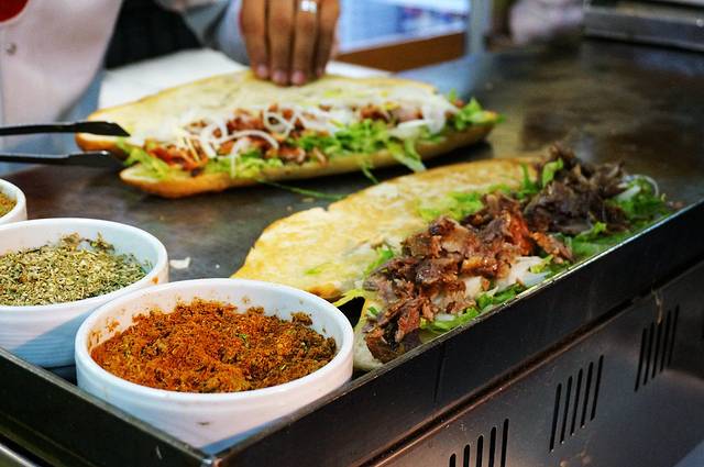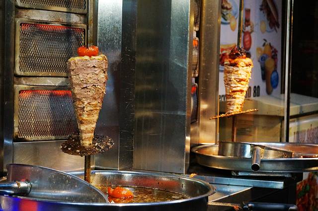 #旋转羊肉# 终于吃到了旋转的土耳其烤肉,哈哈,跟国内完全不一样,不是发面饼夹着,也没有黄瓜丝,是下面垫“馕”的,还不错~