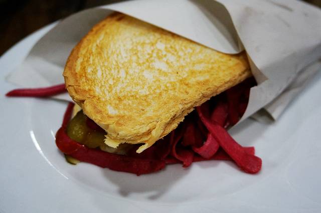 #火腿三明治# 本来想选烤饼,结果卖完了,就选了面包,面包烤的很脆,好吃!那个火腿,看着和图片差好多,一上来红红的真是吓了我一大跳,不敢下嘴,尝了一口发现还不错!哈哈~