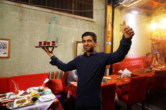 服务特别好,都很亲切,会跟客人聊天、开玩笑,还用纸叠玫瑰花送我。食物非常美味,最后还会赠送甜品和土耳其茶和苹果茶,点赞~下次有机会来尝尝羊排,据说是他家招牌~