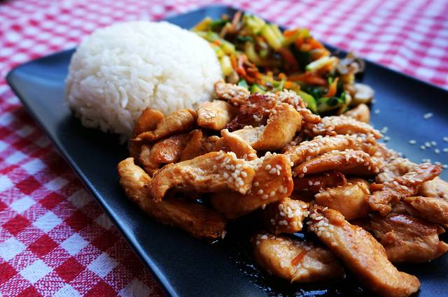 #照烧鸡肉饭# 量给的真是足,鸡肉满满一大盘,女生一个人真的吃不完。还有配菜,很丰盛。味道也不错。