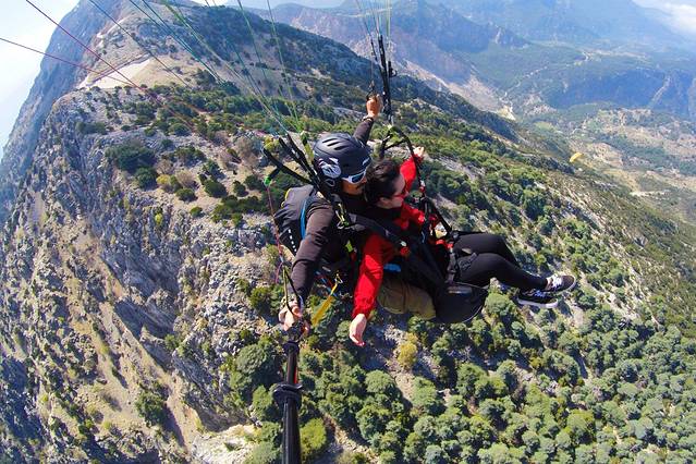 很多人不敢玩滑翔伞,其实滑翔伞和跳伞的差别还是很大的。滑翔伞是靠风和教练的技术,而且一点失重感都没有,完全不会感觉害怕。就相当于露天飞机,在上面看风景还是很美的!