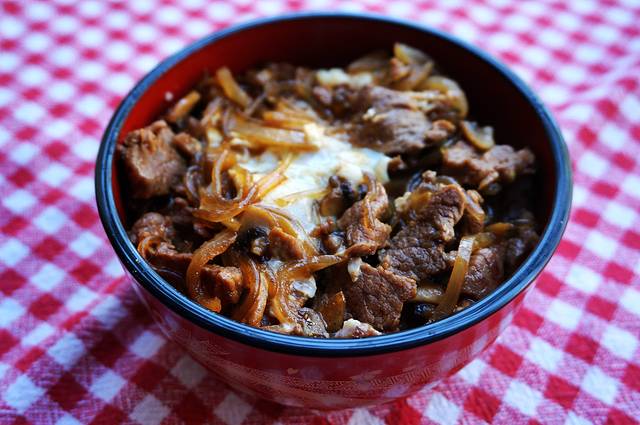 #寿喜烧牛肉盖浇饭# 其实就是日式牛肉饭,不过因为放了味淋,所以会有点甜,味道很正宗,不过牛肉略硬,没有日本的牛肉嫩,但是也可以理解,毕竟是在土耳其。