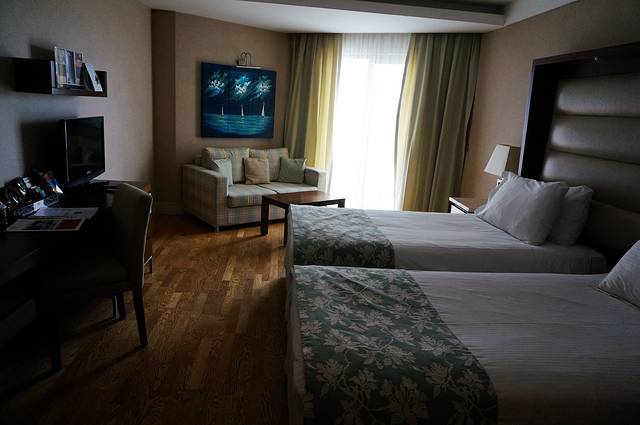 选择理由:这家酒店在码头对面,距离海边大约50米,从酒店可以俯瞰费特希耶海湾。顶楼看风景不错,还有泳池。距离市中心也很近,步行5分钟吧。房间稍微有点小,楼道和电梯就已经感觉到了,但是麻雀虽小五脏俱全,还有阳台可以看风景。他们家顶楼餐厅味道不错,性价比蛮高的。