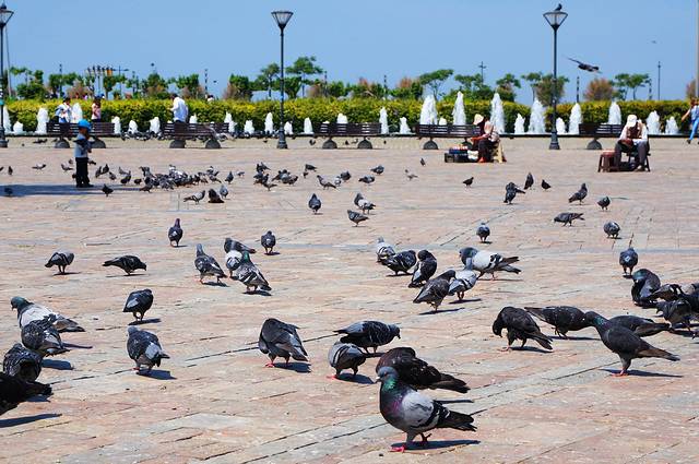 广场有很多鸽子,也有很多卖鸽子粮的人。