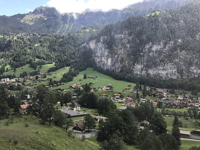 从劳特布伦嫩的缆车站(就在火车站对面)坐缆车就来到了米伦小镇,当然swiss pass依然有效。下了缆车马上就换乘小火车,时间刚刚好,缆车一到,火车就马上出发。