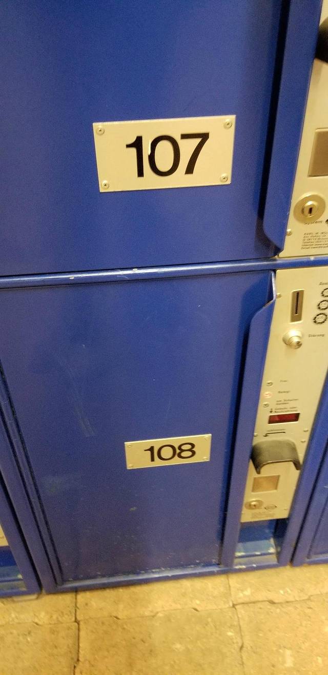 到了之后就能存箱子,需要投硬币,所以找零的硬币不要随意花了,留些大面值的存东西,最大的箱子好像要18瑞郎。如果遇到有些小站没有大箱子,可以去站台找柜台,专门存取。
