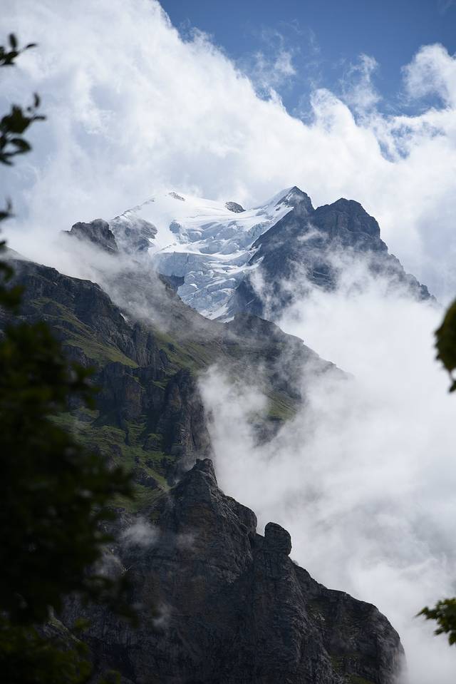 刚好拨云见日,乘着下缆车换火车的间隙,艾格峰挣脱了云雾的包裹,人们都在竞相一睹艾格峰的雄伟英姿。转眼,它又被云层包裹住了,好像起来撑了个懒腰,接着再睡