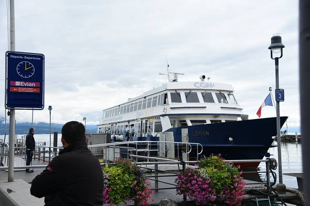 下车就能看到码头了,两点整开船,虽然是到了法国的Evian,但是来回swiss pass都是可以使用的,不需要买船票。瑞士的交通工具的报时都是这种传统的钟表,而不是数字。下一班的时候工作人员来掰时针调整时间