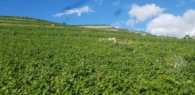 由于时间已经晚了,在洛桑到蒙特勒的火车上,匆匆拍了一张葡萄园,算是来此一游了吧