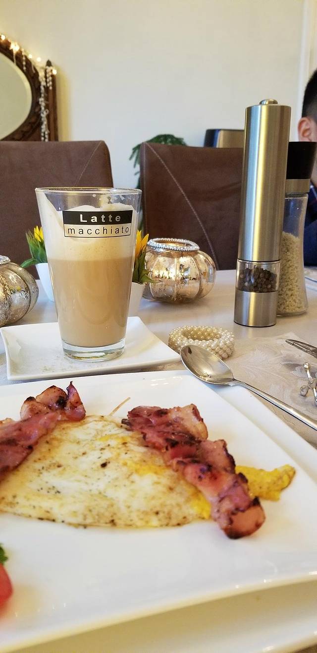 还有新鲜的培根和煎蛋,当然还有咖啡