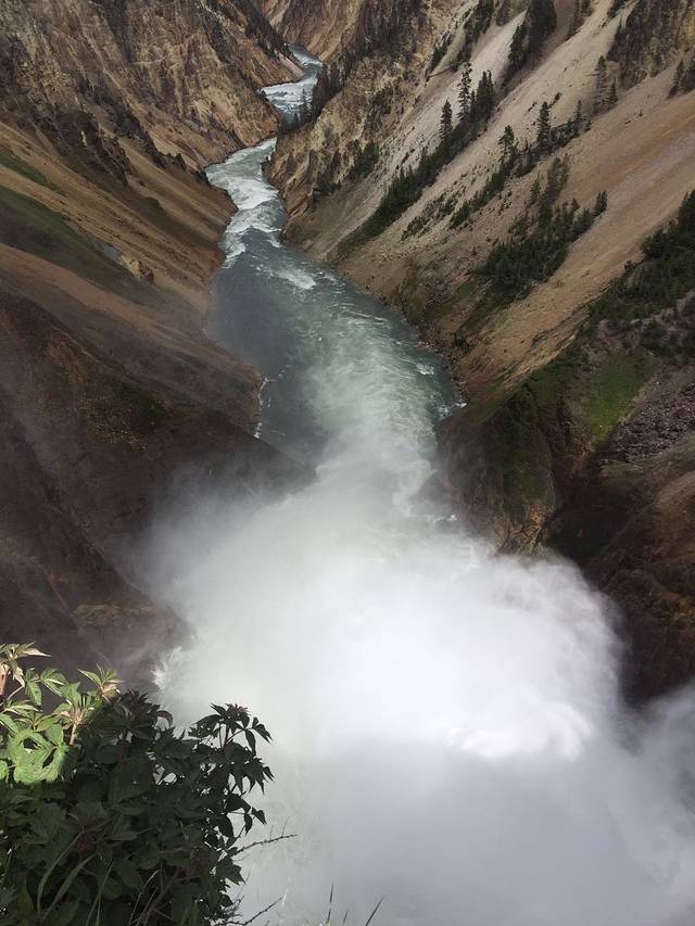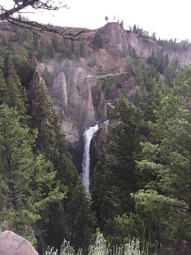 接下来就是黄石的东边的一撇了,到达瀑布区,tower fall,这个区域要下山走到瀑布的边上去欣赏,道有点陡,不过注意一下没有问题,绝对非常值得。临近瀑布的栈道上,感受瀑布落下千丈的震撼,以及大自然的力量,大多能看到🌈,很壮观!