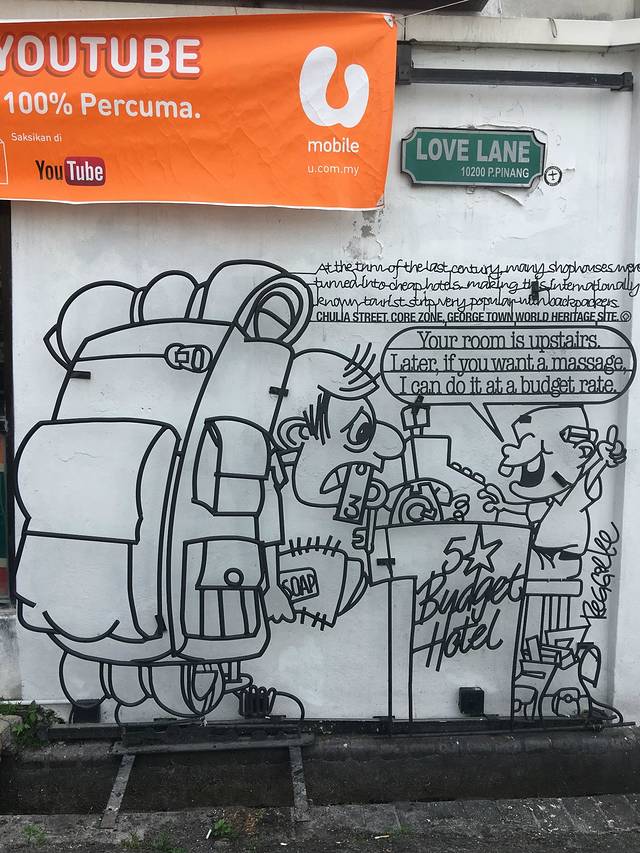 这次行程是为了榴莲而来,所以槟城是必选之地。乘早班机到达槟城,到民宿换好衣服,准备出发。槟城第一天就是去寻找壁画。