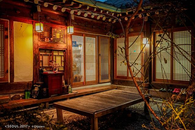 后面两晚想体验传统韩屋,选择了位于景福宫旁边的五福客栈,位置有点难找,在小巷里面,标识不是很清楚。想订韩屋的盆友要注意,许多韩屋都是不带独立卫生间的,如果介意的话,像我们,订的时候就很留意每家客栈的描述。这家五福客栈也只有两间房间带独立卫浴。