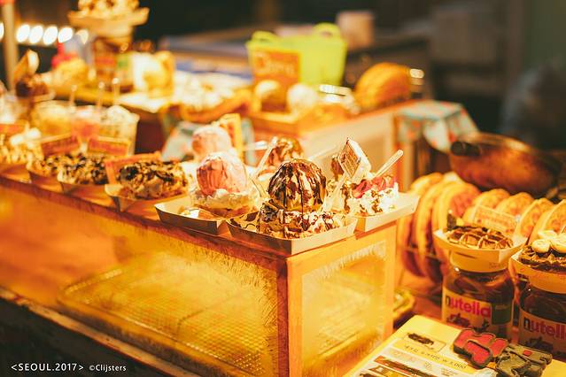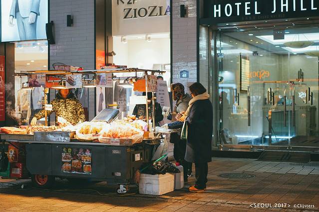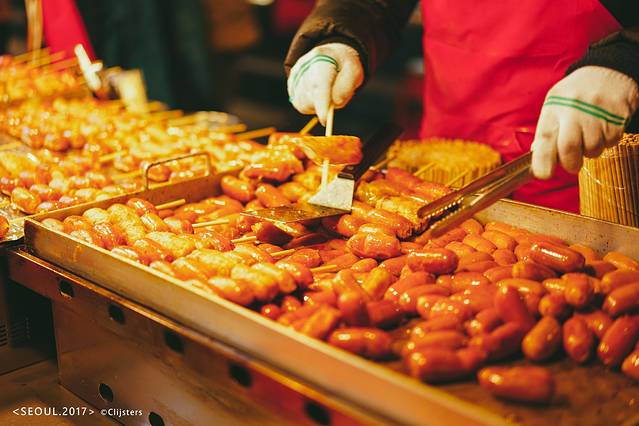 3.吃饭问题不用愁,明洞商业区里不但有很多非常著名的餐馆,如耳熟能详的王妃家烤肉、全州中央会馆还有百济参鸡汤等等,而且晚上会有各种小吃纷纷摆上街头,堪称明洞夜市,真是吃小吃也能吃饱。