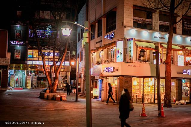 回到客栈已经八点多,放下行李,约上隔壁房间的两位美女,打算去仁寺洞逛一逛。