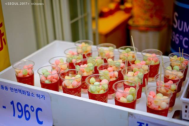 这个小吃是冰淇淋球,在近-200°的温度下冷冻而成的,颜色看着就很清新,据说是谢霆锋来拍节目的时候尝过的?