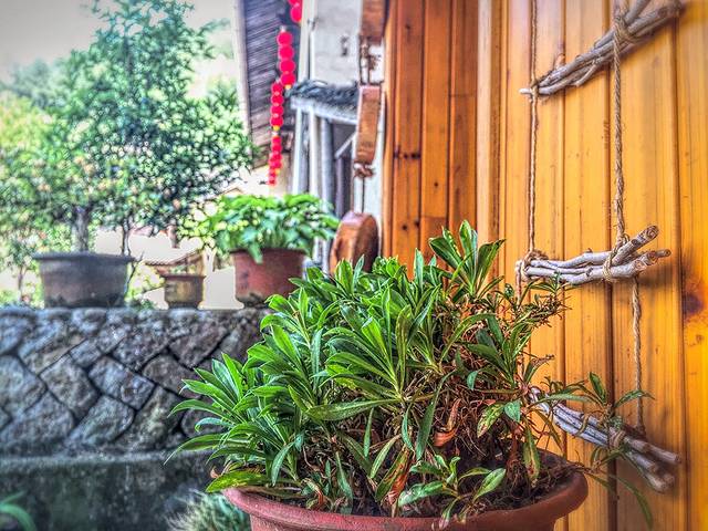 随处可见的一草一木,似乎都透露着李宝村内心藏不住的情愫。最惹眼的便是村庄里一家木质外观的小客栈,名为“水月阁”。门口的青翠,房梁上煤油灯模样的灯盏,在蓝天的映衬下,掩盖不住对自由的向往。这里不是厦门,不是云南,不是很多文艺青年憧憬的地方,可它不为没有南来北往的人群惆怅,因为它从来不为盈利生存,至少现在,这里只是村民安放身体和灵魂的家。