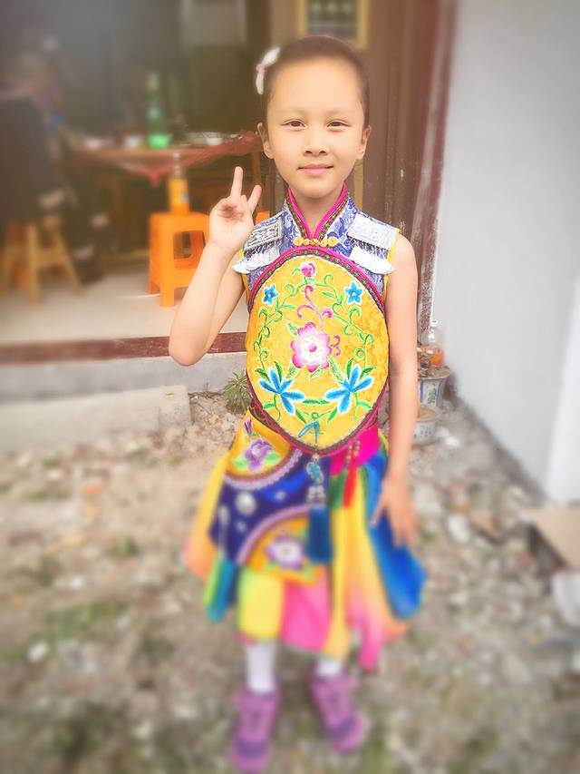 然后我遇见一个畲族小姑娘,也穿着耀眼的服装,以“你几岁了?”“你叫什么名字?”开始话题,然后在某个人的离去后结束相遇。