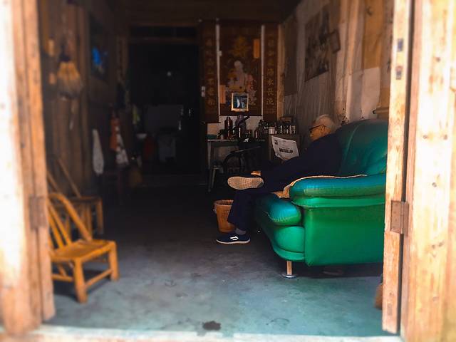 我两次走过小小的街头,总是看到一个老爷爷靠在自家沙发上看报纸,没人能打扰他此刻的专心致志。