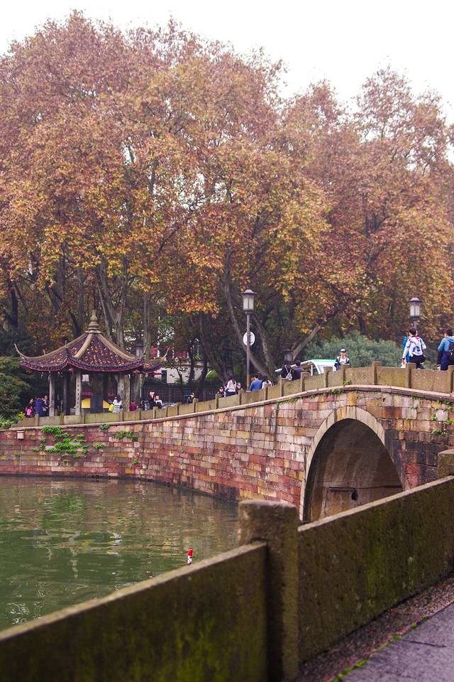 西湖不小,心想不到一天时间必定玩不全,就选了几个喜欢的,靠近的景点开启了暴走模式。前一天乌镇玩到下午三四点,就包车回了杭州(其中包车的各种小插曲我已不想提及了。反正最后是花了240块钱2个小时到达杭州风荷国际青年旅行社)。到达后一安顿好就出去吃了饭。然而秋意浓啊秋意浓,5点多就夜黑风高的西湖景区,我们吃完饭就回去休息了。