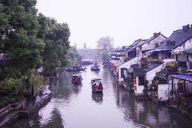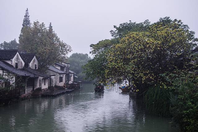 我是发现了,水乡这种地方,真的跟现代社会格格不入。没有人的照片才是最和谐的,要么就穿个汉服之类的在河边唱唱周杰伦的歌“天青色等烟雨,而我在等你”