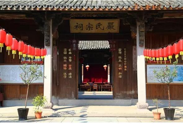 严氏宗祠是村村子西北角最大的古建筑,又叫敦伦堂,建于清乾隆年间。共四进,高大敞亮,每进均有天井,天井两侧均建厢房相连。祠堂大门为八字形,门额挂一匾,系乾隆年代之物。“山高水长”四字是取自范仲淹发现严子陵后裔后,写的一篇记中的文字。