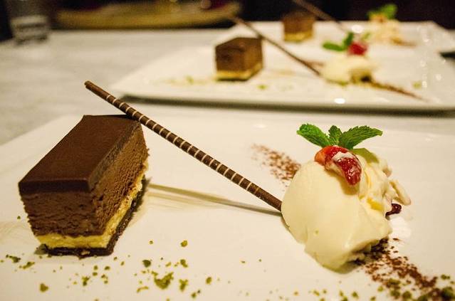 最让人惊艳的是最后的一道甜品:茅台巧克力冰淇淋,当然,这和我们小时候的酒心巧克力完全不是一个概念,这款冰淇淋完全不甜,但是茅台的香配以黑巧的醇,两个味道融合在一起产生奇妙的反应,那种味道实在让人欲罢不能。