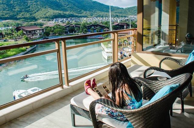 我们住的湾景房型,属于基础房型,却也有70多平米,非常宽敞。坐在阳台上可以看到青山和亚龙湾以及停泊在港湾里的豪华游艇。小月格格好奇地指着游艇向爸爸问这问那。