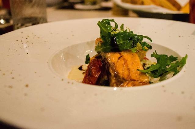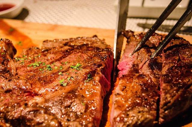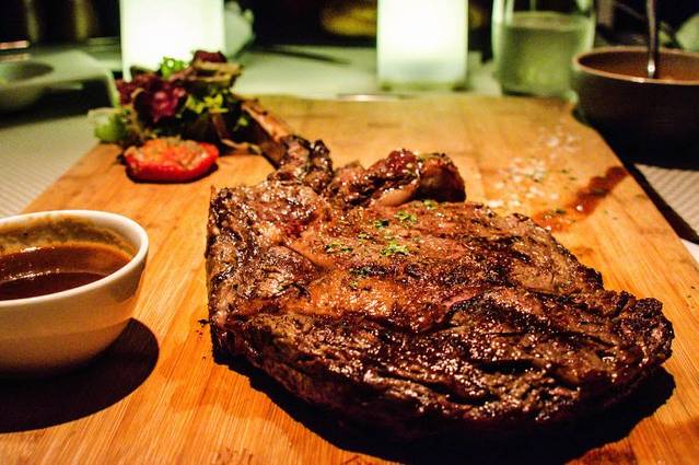 印第安语里面的Tomahawk是“斧头”的意思,斧柄部分是牛的第七块肋骨,这个部位的肉质结实,油脂丰盈,因为带着一根肋骨,形状好像古代战斧引而得名。瑞吉酒店选用的是150天谷物喂养的澳洲上等牛肉,加上主厨先生亲自下厨精心料理,7分熟也不为过,外层烤的恰到好处,略微焦脆,带着浓郁的烧烤香味,中间的肉质细腻鲜嫩,汁多弹牙,细品有鲜肉的甜味,好食材造就了这道精品美食。套餐中,还搭配了一瓶上好的澳洲红葡萄酒。