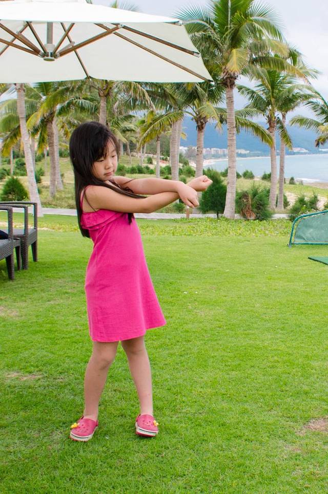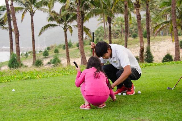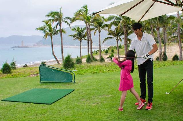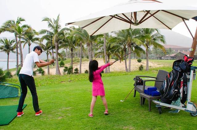 听到要上高尔夫课程,小月格格高兴得手舞足蹈。小月格格和高尔夫缘分不浅,6年前抓周的时候,她把粘在手上的人民币甩开,直奔着高尔夫球爬去。这以后我们的旅行中,她曾经在美国加州一号公路旁的17英里;澳大利亚大洋路高尔夫球场;泰国清迈以及上次三亚行的神州半岛喜来登高尔夫练习场与高尔夫有过多次接触。这次在风景这么美的地方又有了好机会,怎能不开心呢?
