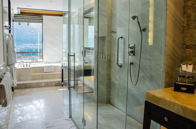 躺在卫生间的浴缸里可以欣赏山景,边泡浴边观景,神仙般的奢华度假体验。