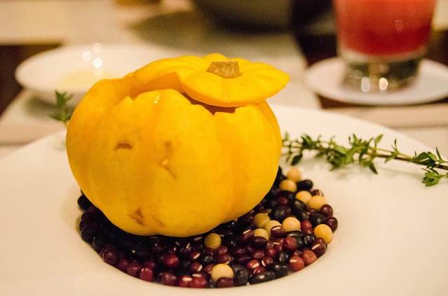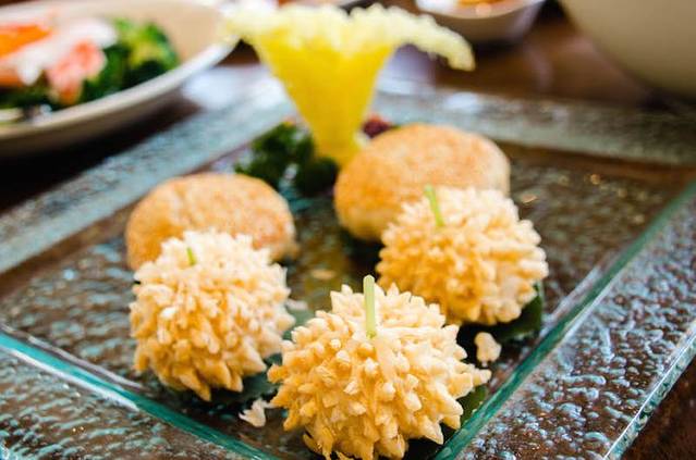 特色菜糟粕汁蟹丸汤盅也值得一试。采用海南民间酿酒过程中酒糟发酵产生的酸醋-糟粕醋作为汤料,浸煮蟹黄丸、蟹子虾丸和菠菜墨鱼丸,配以爽口纯天然发丝海菜。手打蟹肉丸Q弹鲜美,微辣酸甜的糟粕醋陪衬蟹肉的鲜甜,清爽鲜美,口味非常特别。