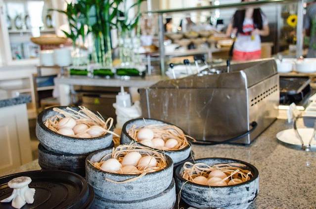 全日餐厅的早餐,一直可以吃到11点。早餐内容一应俱全,仅鲜榨果汁就有不下5、6种,各类咖啡也可以现点现做,睡到自然醒,再吃上一顿这样丰盛的早午餐,这绝对是顶级的度假享受了。