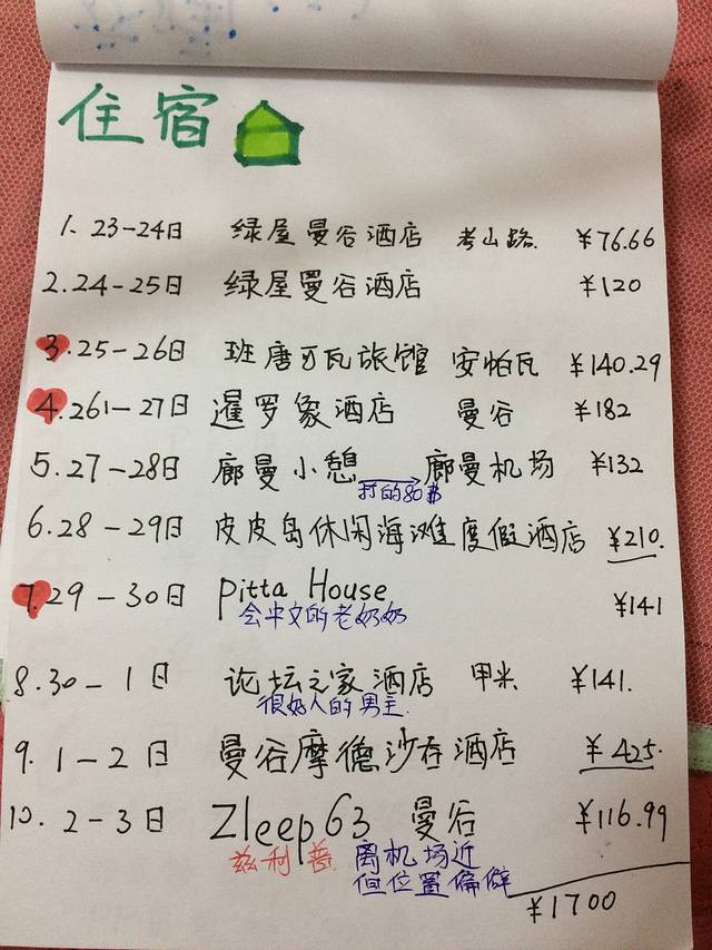 1、护照(2017年8月31日前入境泰国免签证费🤗所以我们签证问题上某宝18元/本搞定。除非时间问题不建议落地签,手续麻烦又费钱又费时)。 2、提前订好机票有优惠。 3、定好出发日期后,出发前在网上找好订好酒店(若果过到泰国提前花光费用或丢失钱包😝也有地方过夜)。 4、常用药:(清热去湿凉茶)我们这个行程用得最多的🤣白天吃得太多上火热气的东西,所以几乎每晚冲一包喝!藿香正气丸(水土不服、肠胃问题) 5、充电宝 6、泳衣 7、手机防水套 8、潜水鞋(在酒店时代替拖鞋) 9、 长袖衫、长裤、防晒霜 10、happy卡 11、浮潜装备。 12、兑换泰珠:面值1000珠(方便携带)、20珠(给小费)、10珠(洗衣服用)