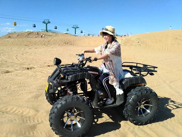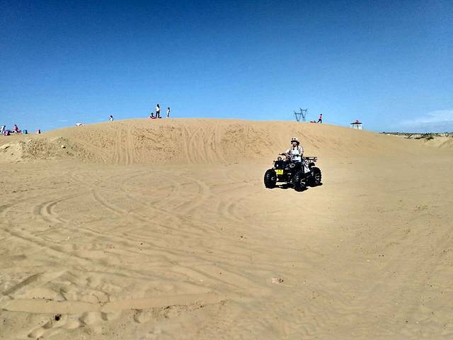 沙漠冲浪车一定要体验,虽然没有驾照,连踏板电动车都没骑过的我还是大胆尝试了下,100元30分钟,可以讲价,让他送一个滑沙板(滑沙板单独租用20元,不限时)