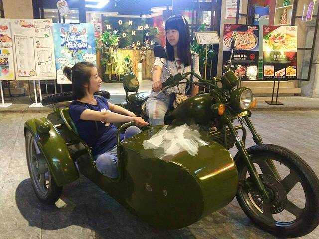 很帅有没有,哈哈,这个是双人的(单人和双人的价钱一样),发动机轰隆隆的,很重,所以需要很强大的控制力哦。玩完之后胳膊真的好酸哦。上下坡是很刺激的,如果你够胆,那就挑战高坡吧!工作人员会教你,知道你会了才开始计时的,那边的人很nice的,超时几分钟都不碍事的。