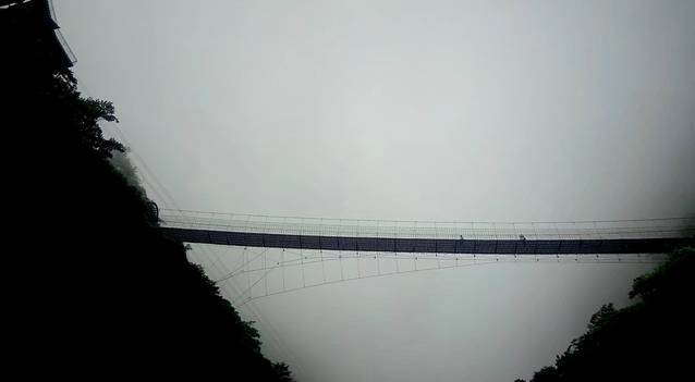 2.在桥的对面由一个滑索,不过是滑索的终点,如果想玩滑索可以等到爬到三叠泉那里的时候再滑下来,之后也可以走玻璃桥。