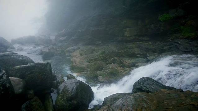 “音浪太强,不晃会被撞到地上”,水雾太大,不动就像在下雨~只能说在泉边,有一种淋雨的感觉,不过感觉好舒服,但有的人可能会感觉呼吸不上来,比如吴子文同学。不过,泉的气势还在的,虽然没有看到全貌,不过感觉还是挺高的,站在观瀑台往上看都感觉都没有尽头。