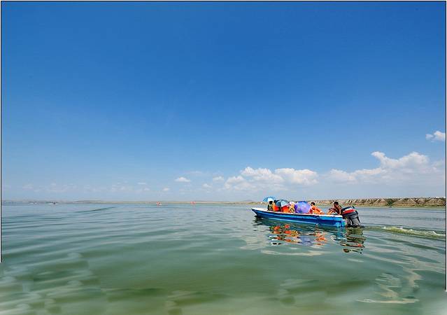 站立呼伦湖岸边,湖水映照阳光,湖风带着水气阵阵吹来,凉风习习,波光闪闪,使人感到极为凉爽。听领队大哥说呼伦湖有八个著名景区,分别为水上日出、湖天蜃楼、石桩恋马、玉滩淘浪、虎啸呼伦、象山望月、芦荡栖鸟、鸥岛听琴。