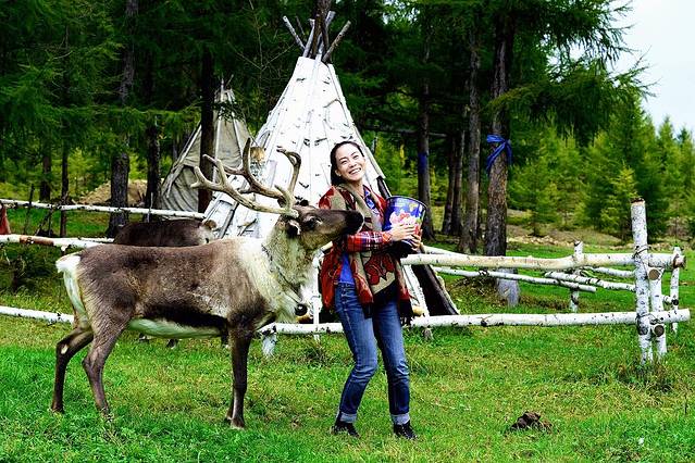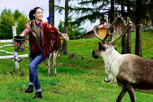 我们来到了兴安神鹿园,我们与鄂温克人驯养的驯鹿近距离接触,想想圣诞老人拉车的就是驯鹿,我们有幸也能体验驯鹿,心中也有小鹿乱撞的感觉,这世间很多东西就怕相互关联,关联上电影的拍摄地,那地方就不得了了,驯鹿和圣诞老人关联在一起,就感觉自己此刻也金光闪闪了,这要是赶上与圣诞节同步,我能像天使一样飞起来,只怪我有一颗无法安放的天马行空的心,和思维乱撞的大脑,也是人们常说的神经病。