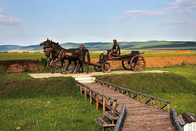 一路白桦林而过,想想当年朴树的忧郁与白桦林很配,而此刻看到白桦林也有想象朴树当年的创作之感。恩和俄罗斯民族乡是全国唯一的俄罗斯族民族乡,这是个特殊的村落,俄罗斯族人占了30%,好多建筑都是俄罗斯建筑,人们管他们的建筑胶俄式木刻楞,木质装饰风格,还有多彩木屋,感觉草原边的异域风情,感受真的很惬意。