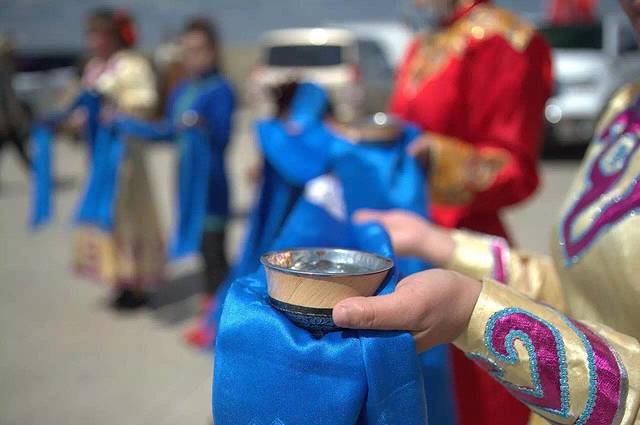5、双手端碗,一饮而尽(一饮而尽视为对蒙古族主人的尊敬)