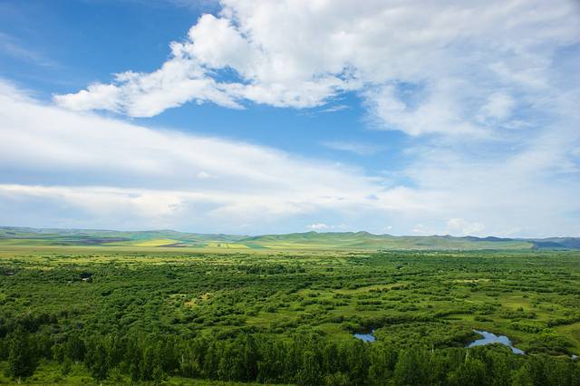 清澈的根河静静流淌着,草甸被曲水环抱,岸边矮树灌木丛生,花草摇曳,连绵成片的白桦林随着四季的不同而变化着颜色。湿地风光有巧工难绘之妙,这天然景色有观赏不尽之美,让人流连忘返。站在观景台上,望着眼前的美景,那一刻,一种幸福感油然而生,只愿时光就这样静静地,让时间慢下来,让空气凝固。