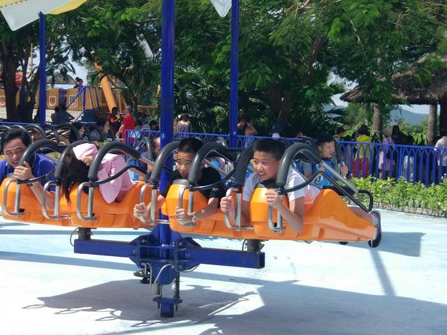 本来要去坐轨道滑车的,结果排队的人太多了,基本上要等两个小时,我们决定第二天早上早点来,肯定空。因为白天有很多当地人过来玩得,门票280元人民币就可以在里面玩一整天的。那就带小的们去海底世界看看吧,总有好玩的东西的。