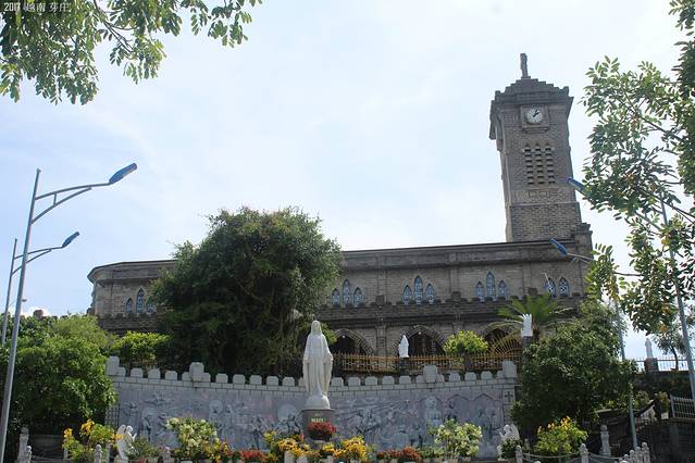 十二点半,集合出发,到芽庄市内,吃了一餐实在说不出什么味道的团队餐,好歹填饱了肚子,下午就是市内景点的行程了。首站是大教堂。导游说,两个月前就开始做弥撒,只能在外面看看,进不去。好吧,那就拍几张照片,留个念好了。