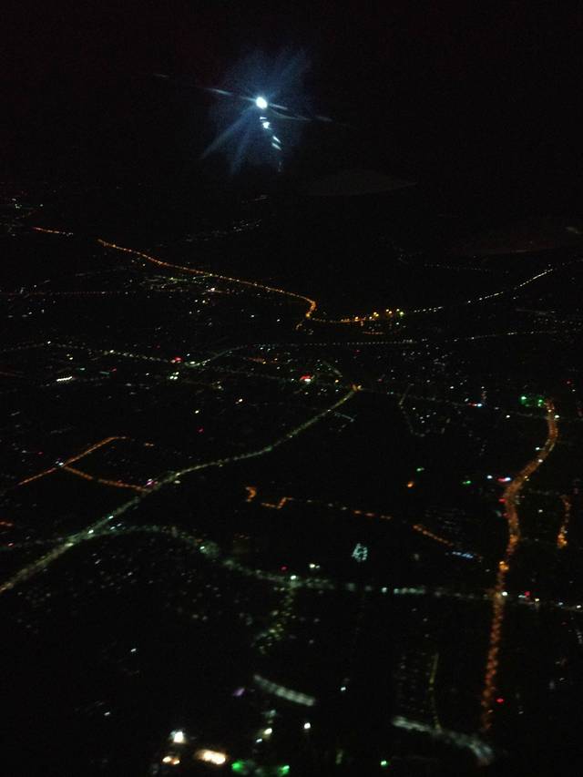 然后就是一路安检,到达登机口。结果萧山机场的最大特色又被碰到了,通知航班延误,一直到凌晨1点半,通知2点可以起飞。好不容易上了飞机,又等了近40分钟。终于,起飞了,此时,地面依然灯光点点,展示杭州G20城市的繁华和魅力!