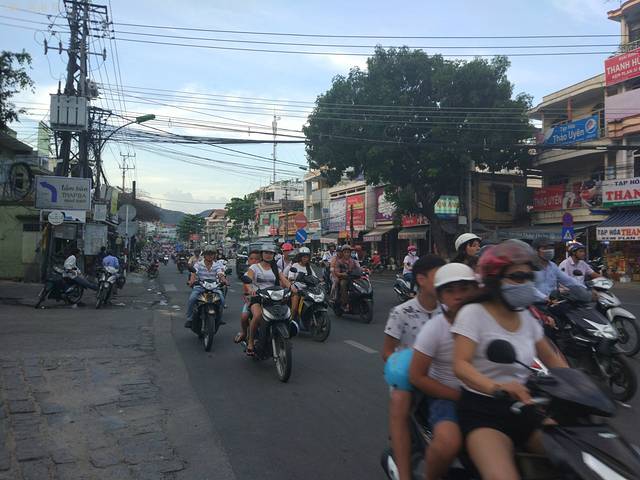 在越南,有几点给我留下了深刻的印象,一是庞大的摩托大军。因为受经济条件的限制,越南大概处于我们2000年左右的水平,汽车保有量很少,好车也不太看得见(当然河内等大城市可能会比较多),但摩托车就多了,密密麻麻。
