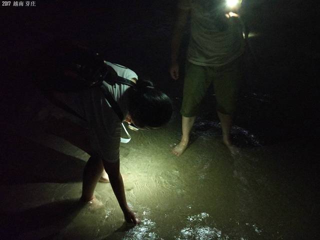 大家打开手机上的手电筒,在沙滩上挖贝壳!