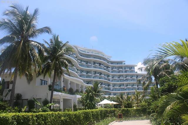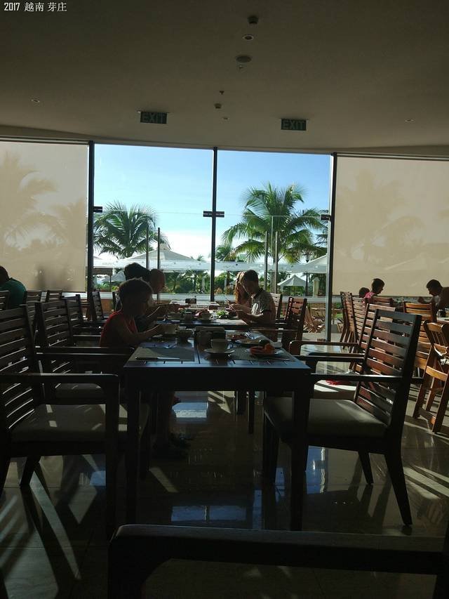 上了车,在当地导游(成都人)阿瑞的带领下,到了金兰湾海滨酒店,时间是六点多。办好入住,拿好房卡,也不去房间了,先吃早餐吧!