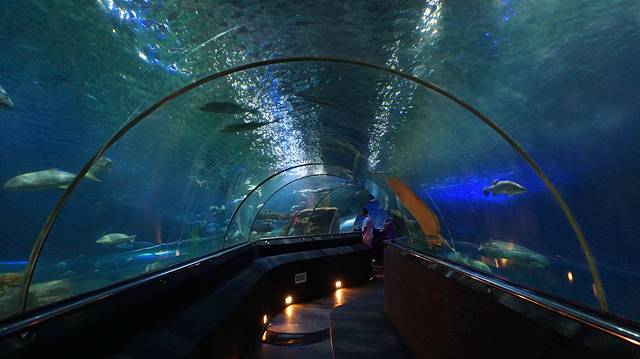 海底隧道,鱼类不是很多,小鲨鱼,魔鬼鱼也有几只。倒是有几种深海的鱼类,长得难看,一米多长,还挺有意思的。